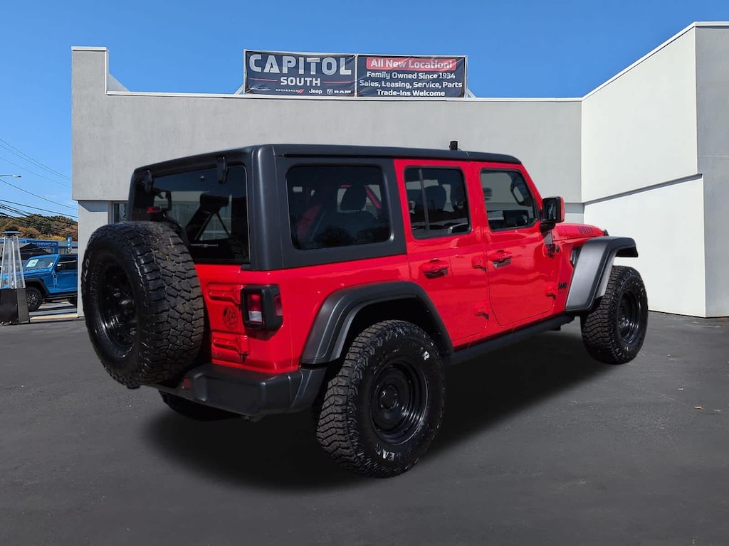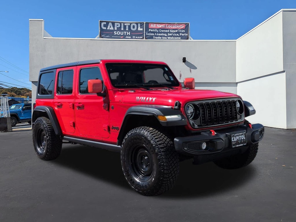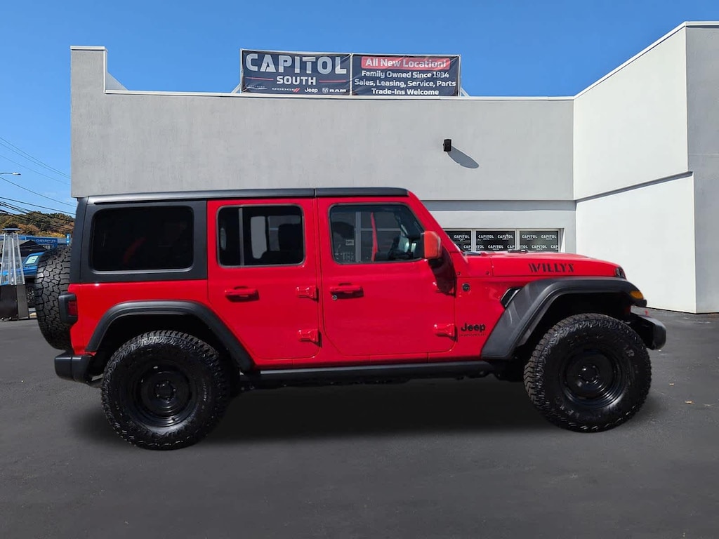 4x4, Back-Up Camera, Satellite Radio, iPod/MP3 Input, Aluminum Wheels, Brake Actuated Limited Slip Differential, WiFi Hotspot MP3 Player, Privacy Glass, Child Safety Locks, Steering Wheel Controls. Jeep Willys with Firecracker Red Clearcoat exterior and Black interior features a V6 Cylinder Engine with 285 HP at 6400 RPM*.